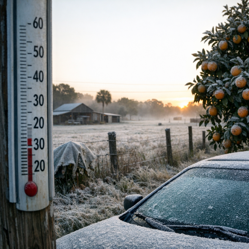 Moradores da Flórida Central enfrentam uma manhã gelada, com temperaturas entre -3°C e 2°C em áreas mais frias (20s e 30s em Fahrenheit). Os condados da região de Orlando estão sob alertas de geada e avisos de tempo frio até 9h. A orientação é clara: proteger plantas, levar pets para dentro de casa e se agasalhar para sair cedo.